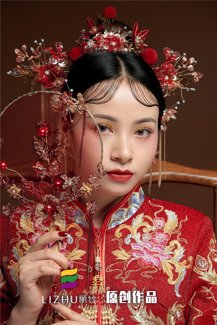 麗竹學(xué)校彩妝作品:中式紅妝新娘造型