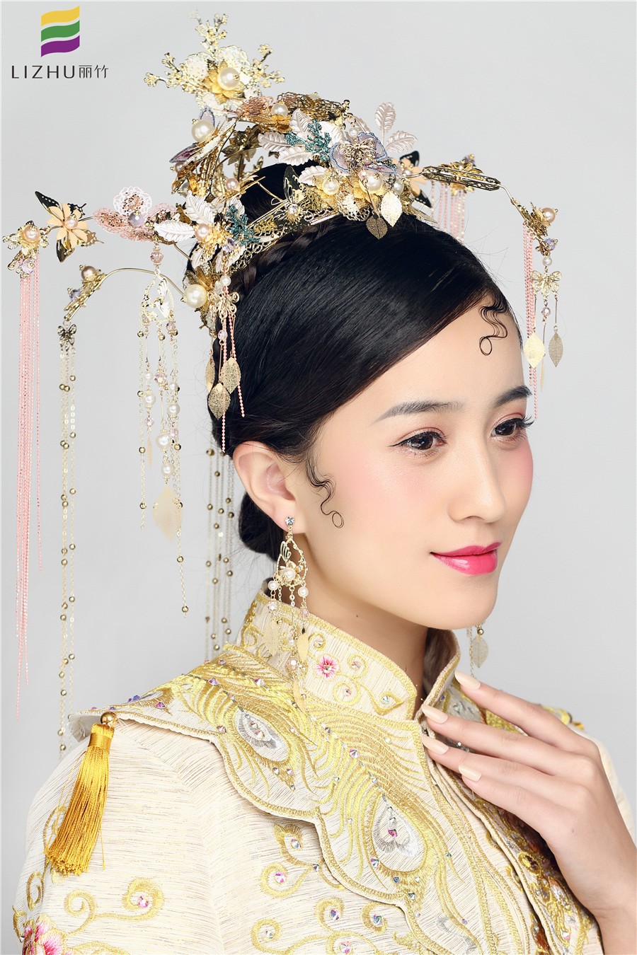 南寧麗竹化妝學(xué)校作品---中式復(fù)古造型。婉約典雅,配上搖曳的鎏金頭飾,面上略施粉黛, 一抹朱唇紅艷,幾分婉約賢淑,幾分典雅大氣,精致的中式新娘造型!