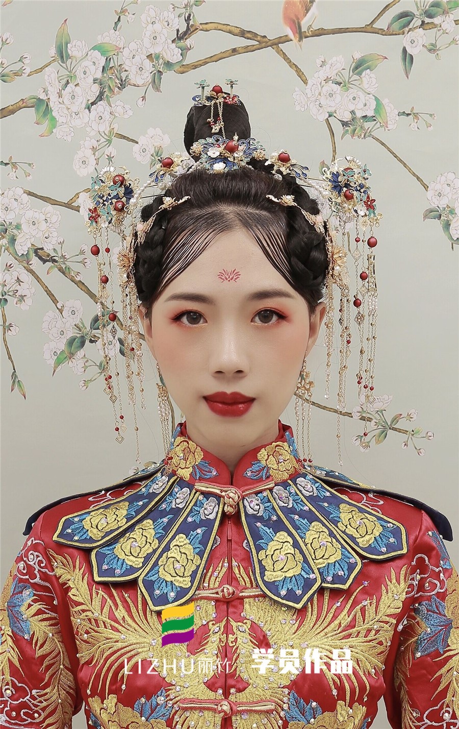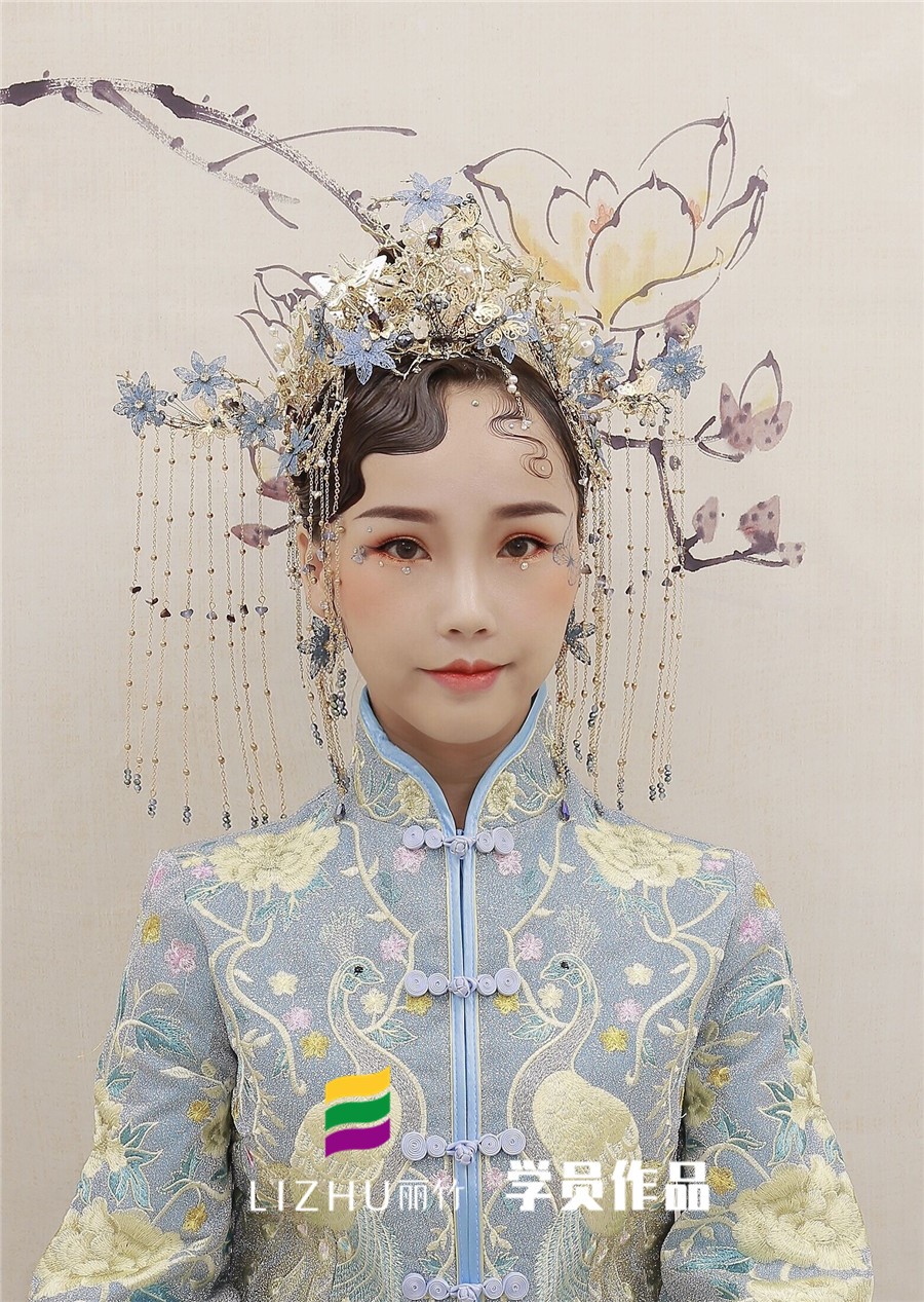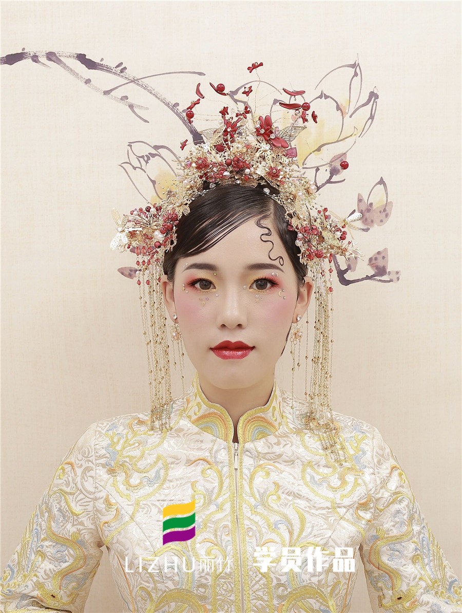 南寧化妝學(xué)校分享:裊娜少女羞,歲月無憂愁,中式新娘驚艷的一抹刺繡,精致典雅,演繹中國(guó)風(fēng),優(yōu)雅的盤發(fā)搭配精致的發(fā)飾,一身華服,正是芙蓉不及美人妝。