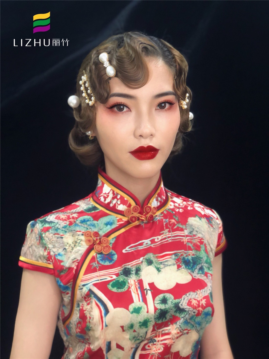南寧化妝學(xué)校分享:搭配民國波浪卷發(fā)型,烈焰紅唇,宛如舊上海畫報中的女郎,演繹出了一個玲瓏有致的古典美人,舉手投足盡顯東方女人的萬種風(fēng)情,完美被驚艷到了!