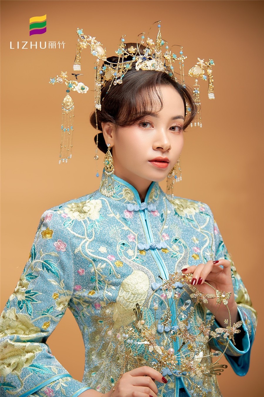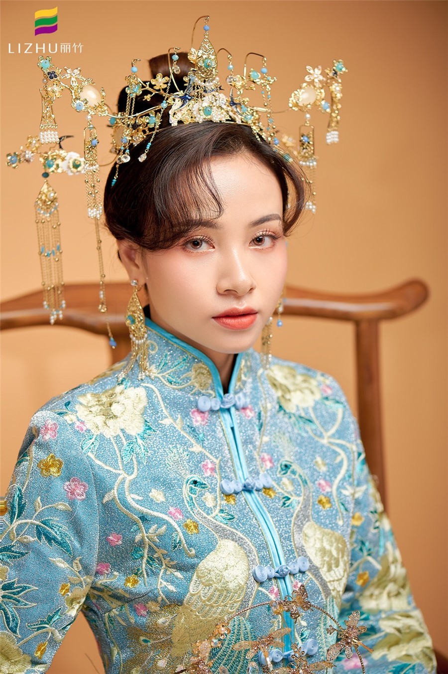 麗竹學(xué)校彩妝作品---婉約中國(guó)藍(lán)秀禾造型