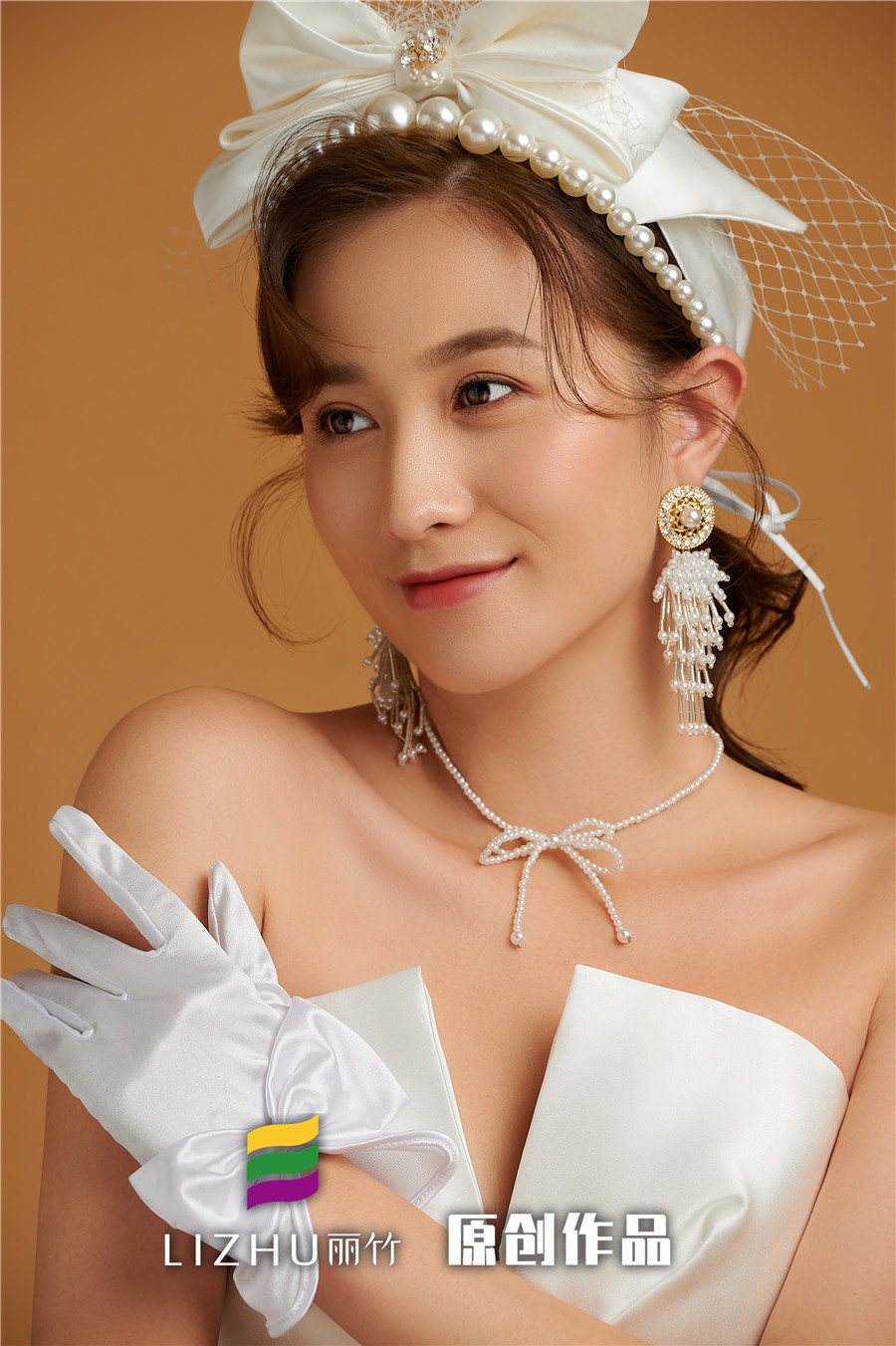麗竹學(xué)校彩妝作品---簡約韓式新娘造型:自然輕薄的妝面似有似無,配上清新靈動的簡約盤發(fā),點綴潔白無暇的珍珠飾品,搭配白色綢緞面料的禮服,凸顯“人淡如菊”的氣質(zhì)。