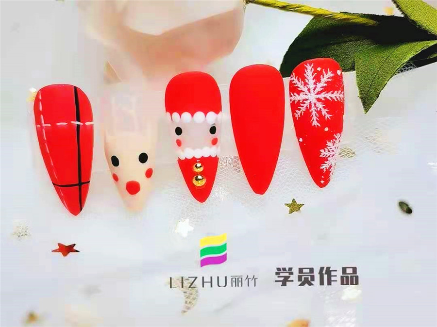 南寧美甲培訓(xùn)學(xué)校分享:“叮叮當,叮叮當, 鈴兒響叮當”伴隨著歌曲,圣誕節(jié)也即將到來,小仙女們的美甲也是時候換上一個與節(jié)日相符的美甲款式了。下面,就看看南寧排行前十美甲學(xué)校(麗竹美甲學(xué)校)學(xué)員們創(chuàng)作的圣誕美甲作品吧!