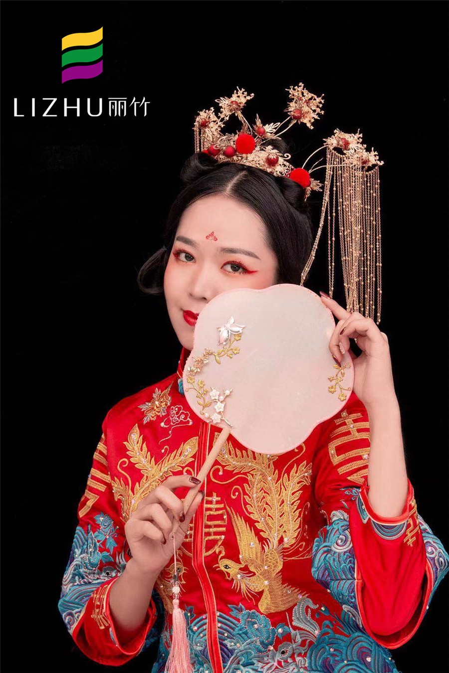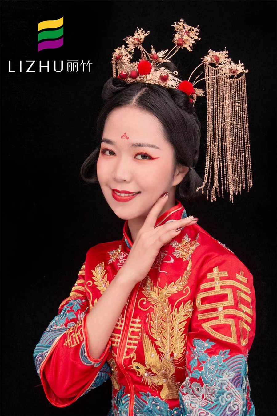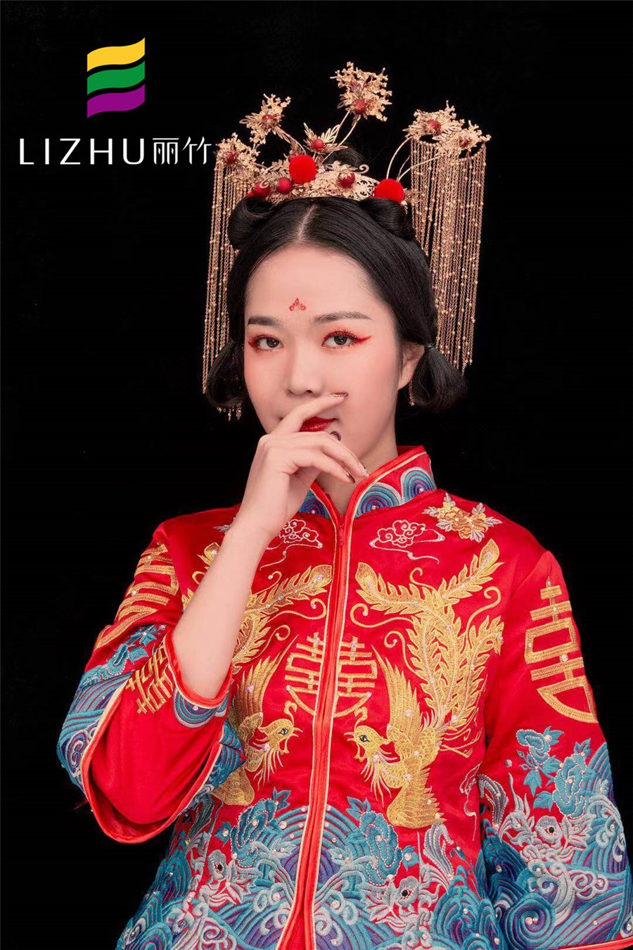 麗竹學(xué)校彩妝作品:中式秀禾新娘造型:端莊喜慶大氣的紅色,配上雍容華貴的金絲秀禾,典雅的妝容更顯新娘儀態(tài)萬(wàn)千,散發(fā)出濃濃的東方魅力。