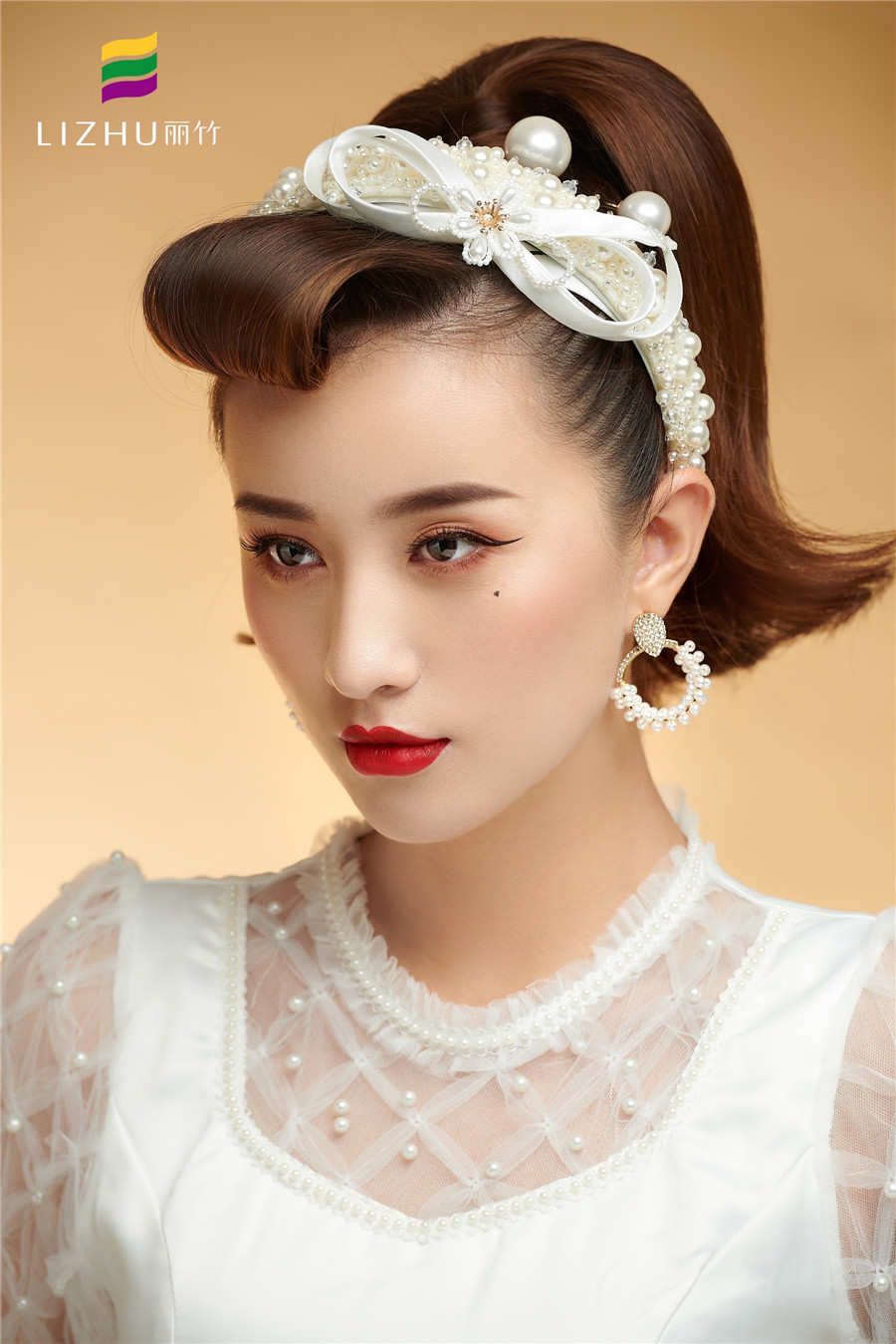 復(fù)古迪斯科妝容造型:簡單并不代表沒有細(xì)節(jié),細(xì)節(jié)決定一個(gè)造型的成敗,以不變應(yīng)萬變的復(fù)古新娘妝容,整體搭配和每一處恰到好處的細(xì)節(jié)處理,干凈氣質(zhì)又甜美 經(jīng)典即永恒 。
