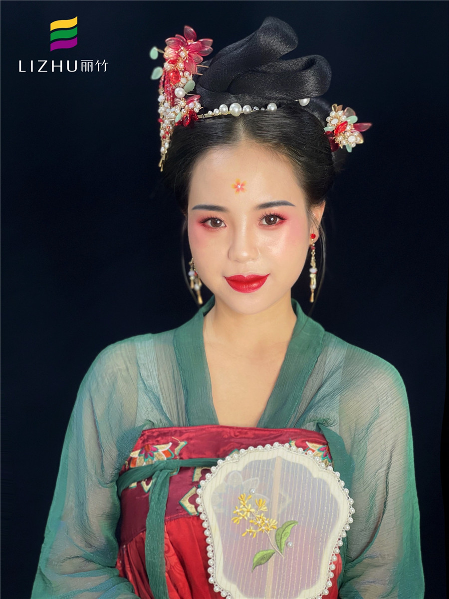 南寧彩妝造型學校作品---古裝造型:青絲黛眉,玉肌紅唇。流盼生姿,頭飾的點綴。眼角眉梢皆是情,有種楚楚動人的美。