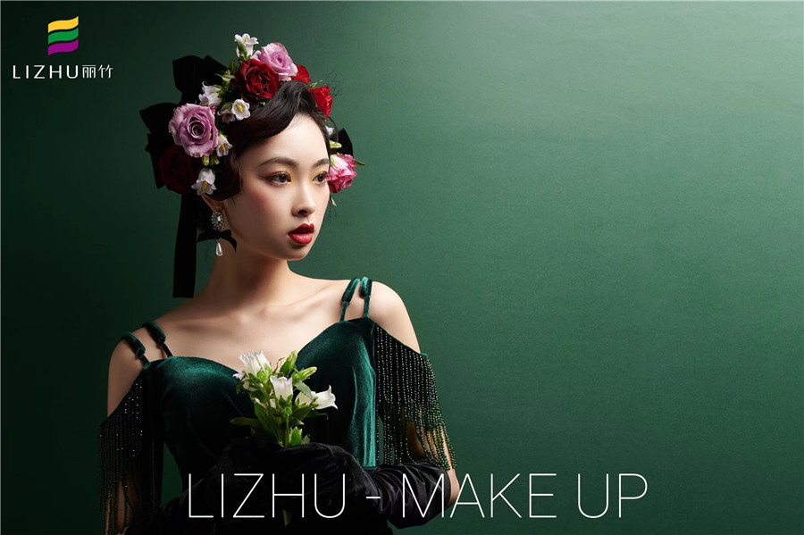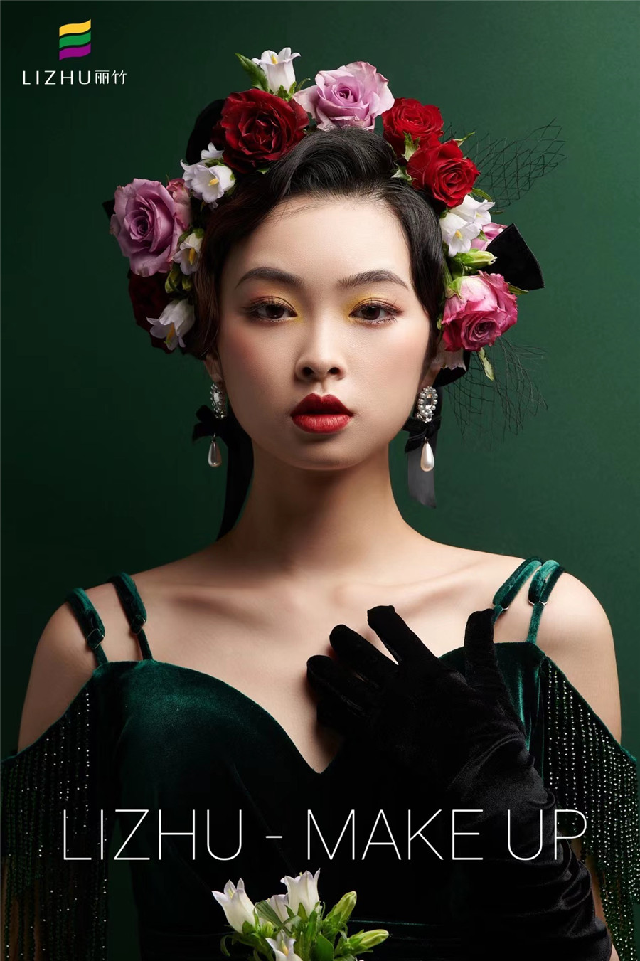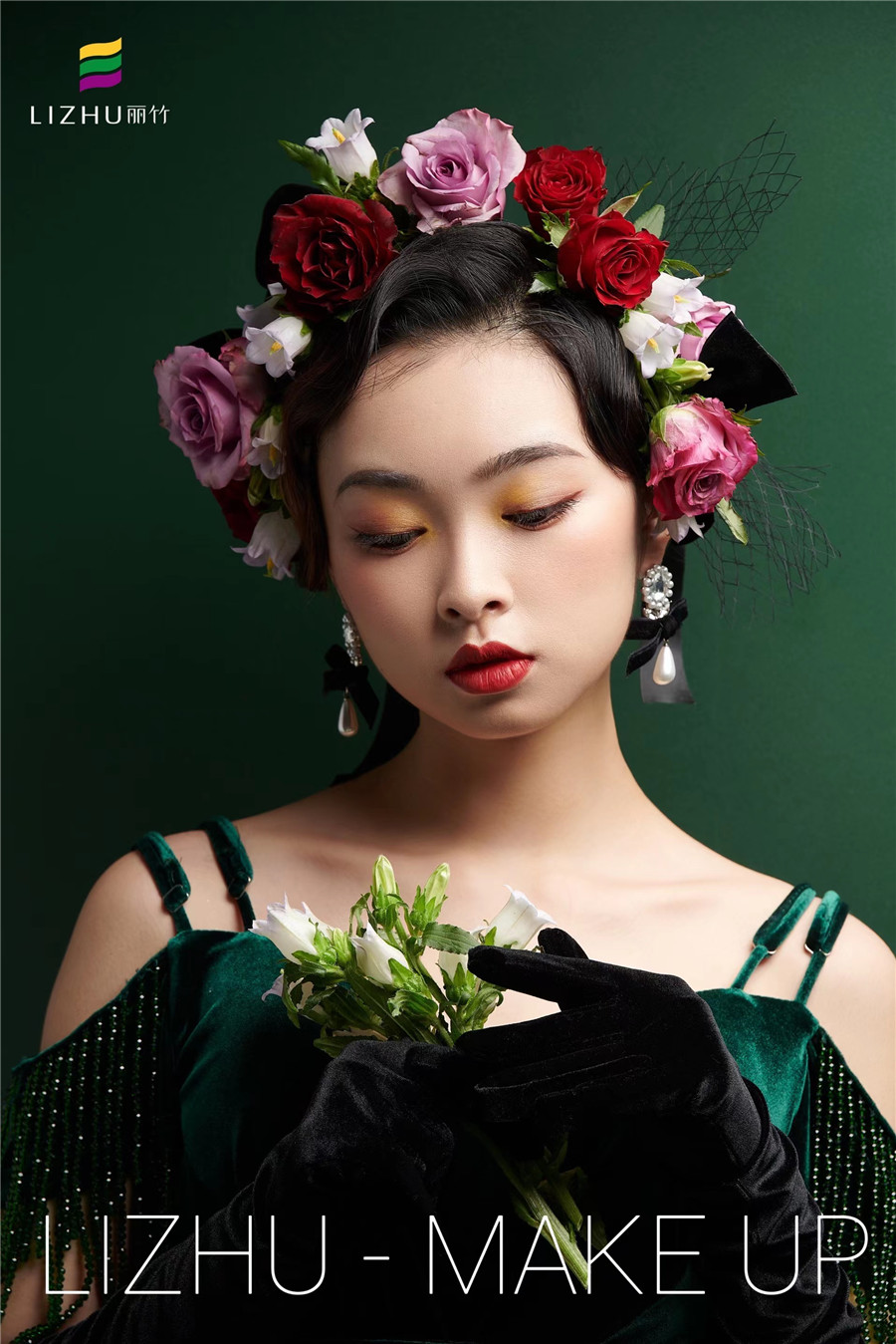 廣西彩妝學(xué)校十大品牌-麗竹學(xué)校彩妝作品:復(fù)古鮮花新娘造型(一)