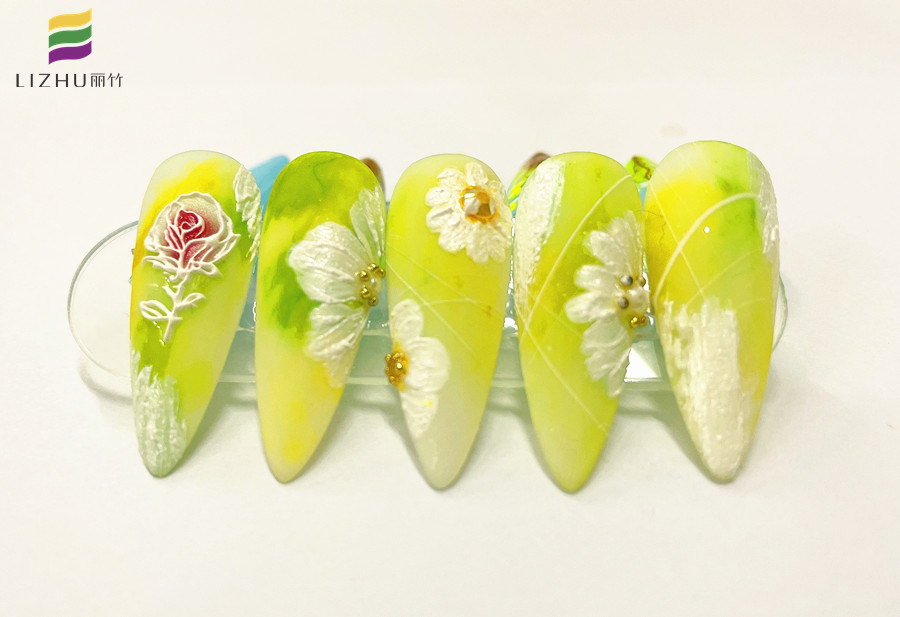 廣西時尚美甲培訓、廣西美甲學習、廣西美甲培訓機構:春日的代表色,怎么能少得了綠色,黃色,和藍色呢?如果讓你將這幾種顏色組合在一起繪制一幅春日美甲作品,你想好怎么創(chuàng)作了嗎?如果還沒有想好,不如就先看看廣西專業(yè)正規(guī)美甲學校(麗竹美甲學校)-廣西美甲學校一對一教學的作品吧!