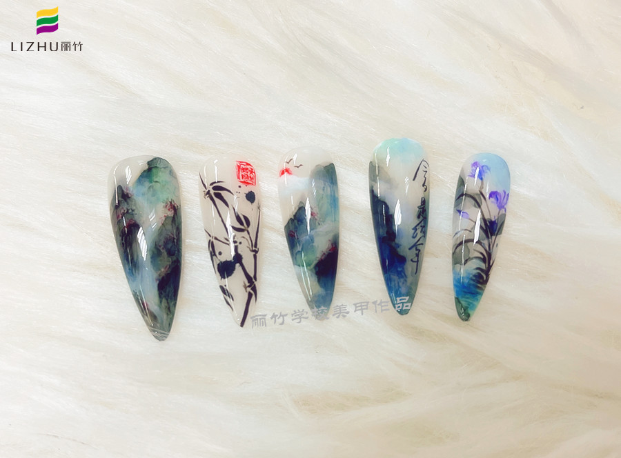 南寧哪里可以學(xué)美甲?麗竹美甲學(xué)校用作品展示實(shí)力---水墨山水美甲
