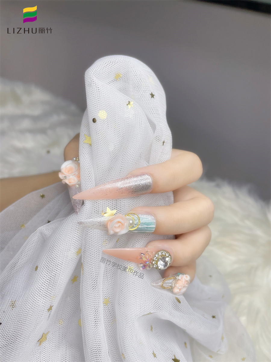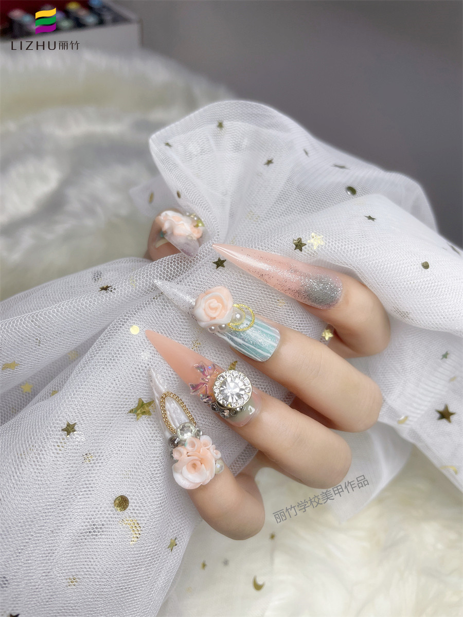 南寧學(xué)美甲哪家有實(shí)力?麗竹美甲學(xué)校用作品證明實(shí)力---鉆石雕花美甲(二)