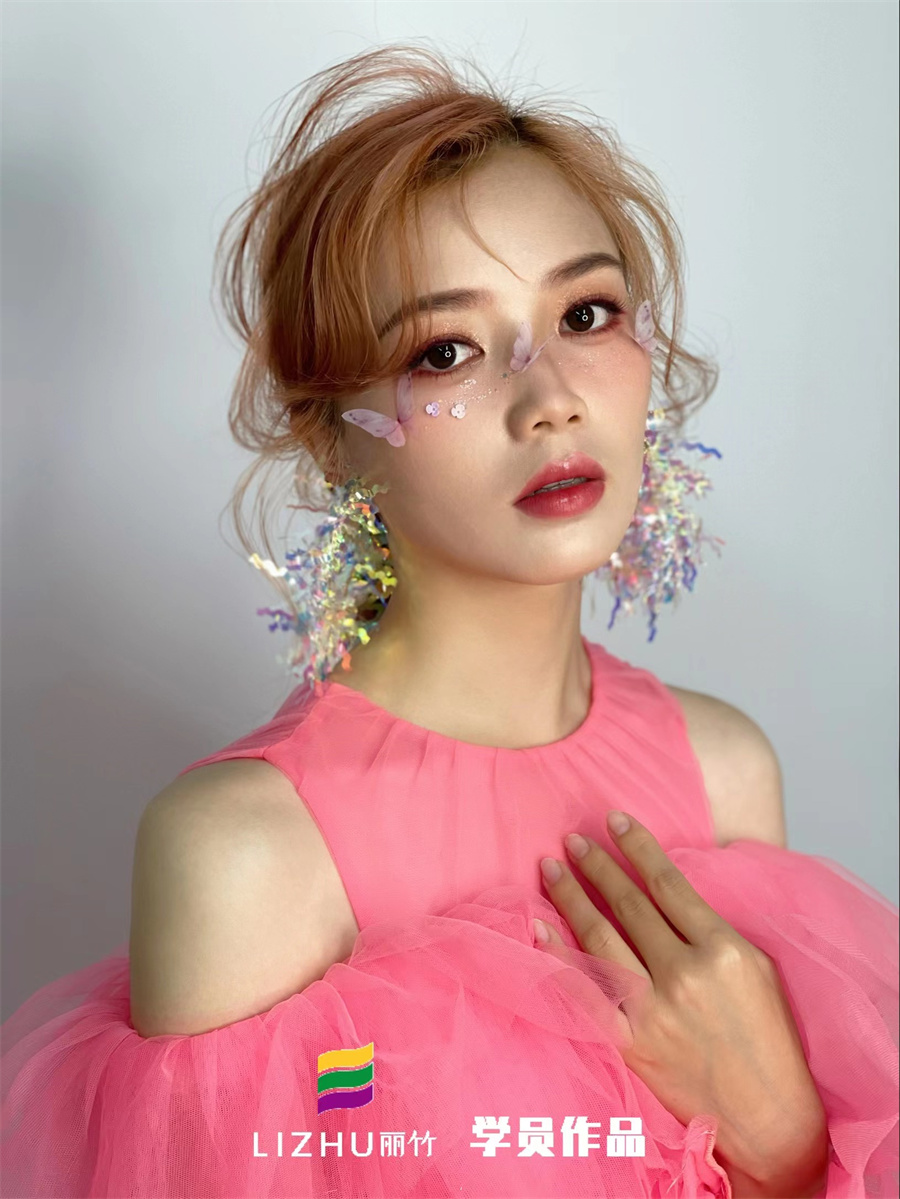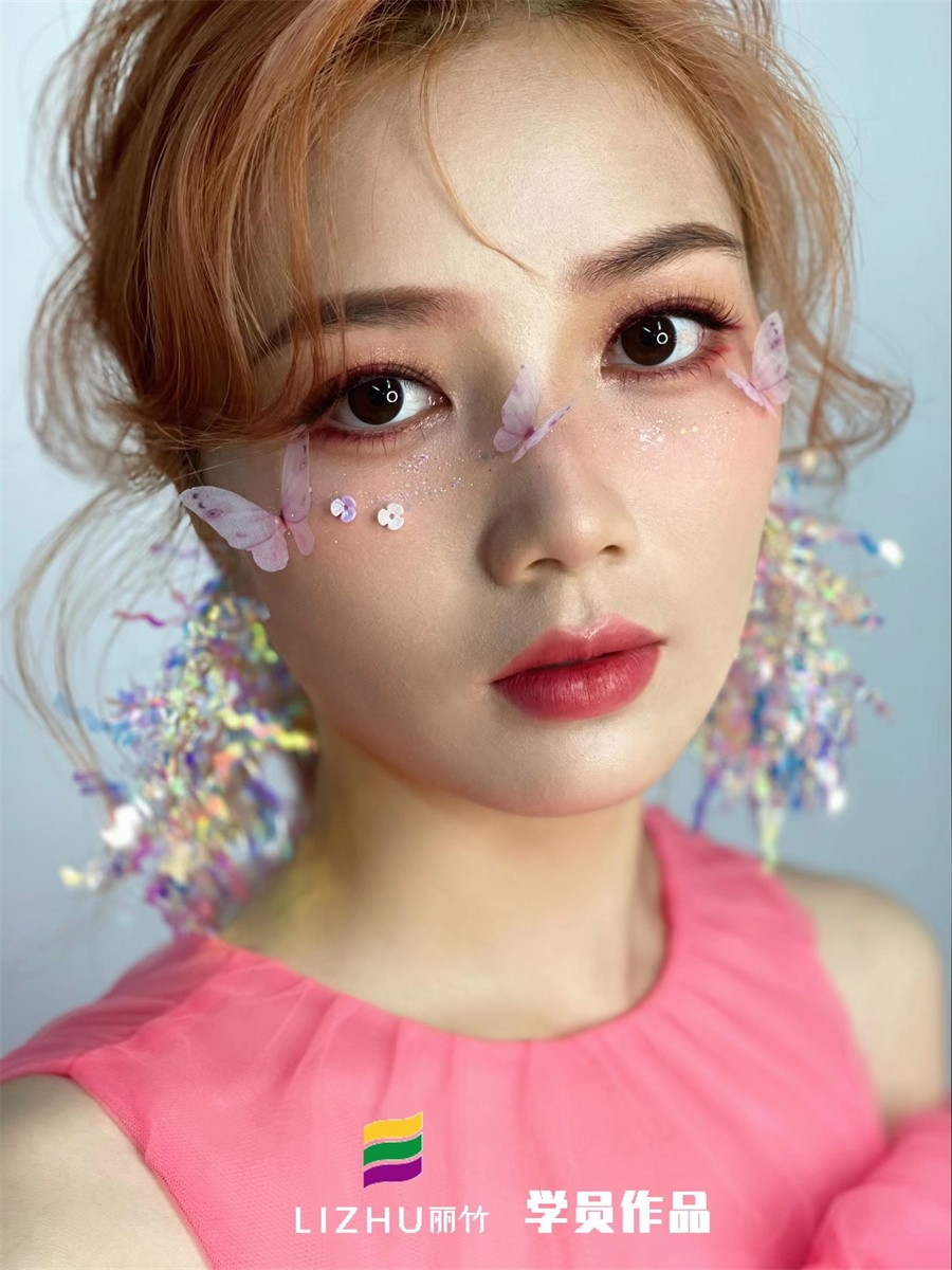 南寧彩妝培訓(xùn)名校、南寧新娘妝造型培訓(xùn)學(xué)校學(xué)員作品--唯美蝴蝶妝容:靚麗且清透的眼妝,被五彩斑斕的蝴蝶點(diǎn)綴,搭配色彩亮眼的大耳飾,產(chǎn)生了很強(qiáng)的視覺效果,讓人過目不忘之余。如果你想零基礎(chǔ)學(xué)新娘妝,南寧老牌化妝培訓(xùn)(麗竹化妝培訓(xùn))-南寧化妝培訓(xùn)班,老師手把手教學(xué),作品新潮,歡迎來電咨詢。