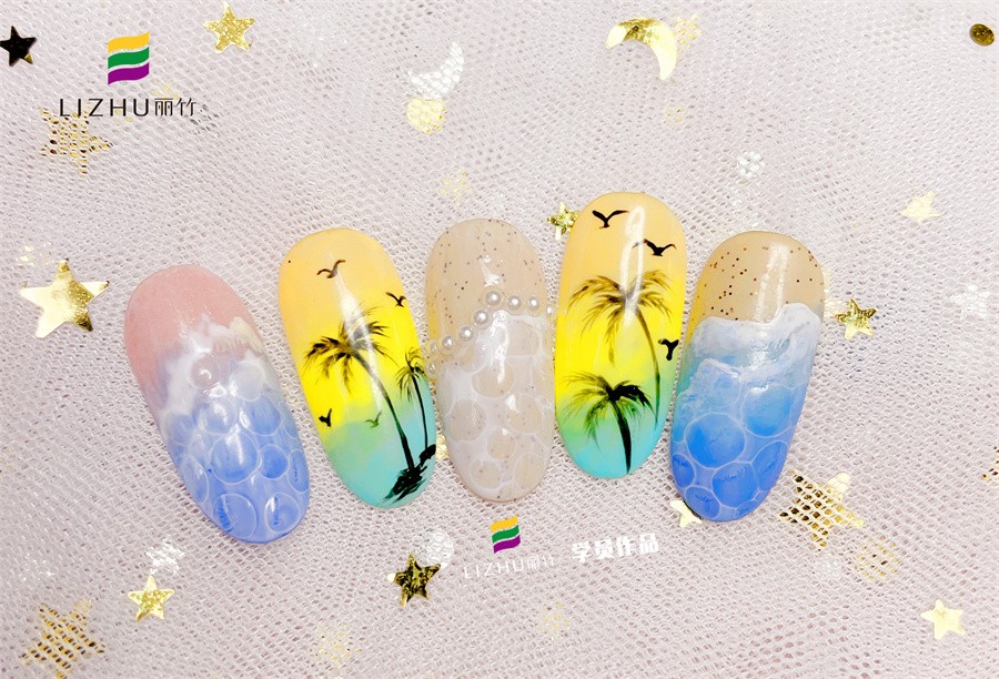 廣西哪里可以美甲進(jìn)修?請(qǐng)看麗竹美甲學(xué)員作品---泡泡海洋風(fēng)美甲