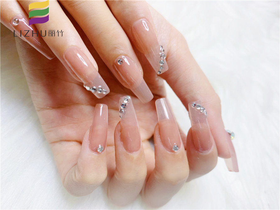 廣西美甲學校一共有幾家?麗竹美甲學校用作品證明實力---透粉貼鉆仙女美甲