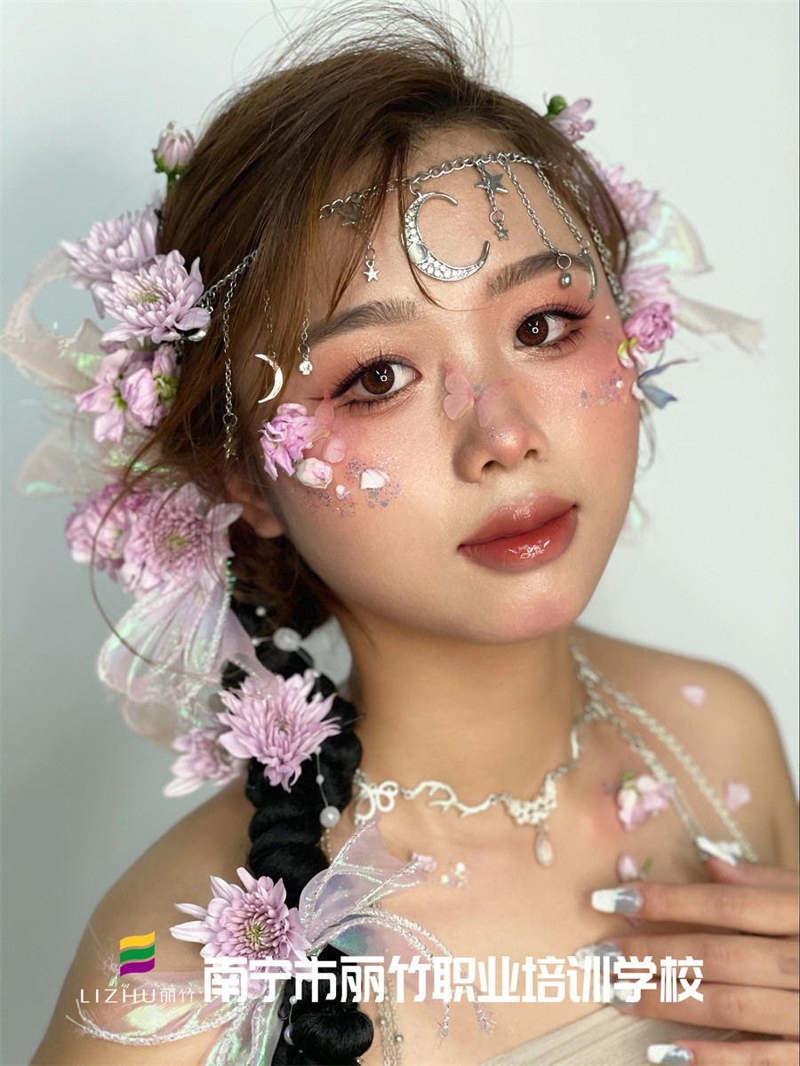 廣西化妝學(xué)校推薦:廣西彩妝網(wǎng)紅培訓(xùn)班作品---哈尼甜心公主造型!以花樣妝容為主,極具民族特色的服飾與頭飾更為整體造型增添了仙氣滿滿的氛圍感,營(yíng)造出了甜蜜的花樣公主形象。如果你對(duì)彩妝感興趣,建議你到廣西彩妝學(xué)習(xí)機(jī)構(gòu)或是專(zhuān)業(yè)廣西時(shí)尚造型彩妝學(xué)校去學(xué)習(xí)。