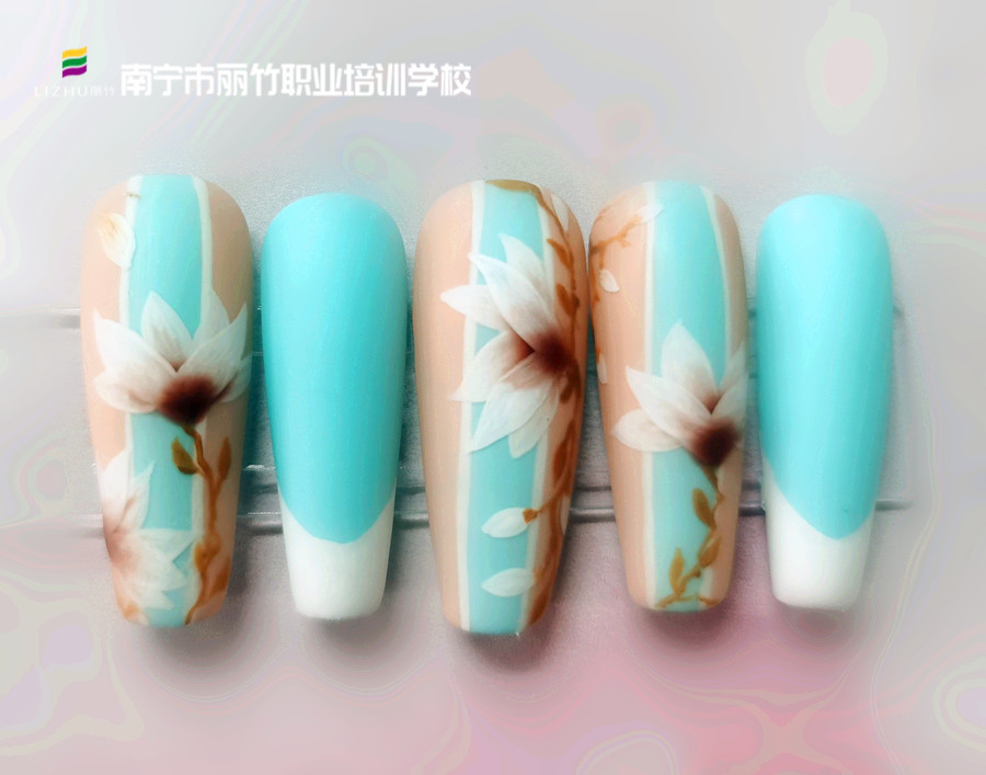 麗竹美甲速成班學(xué)員作品---玉蘭花美甲