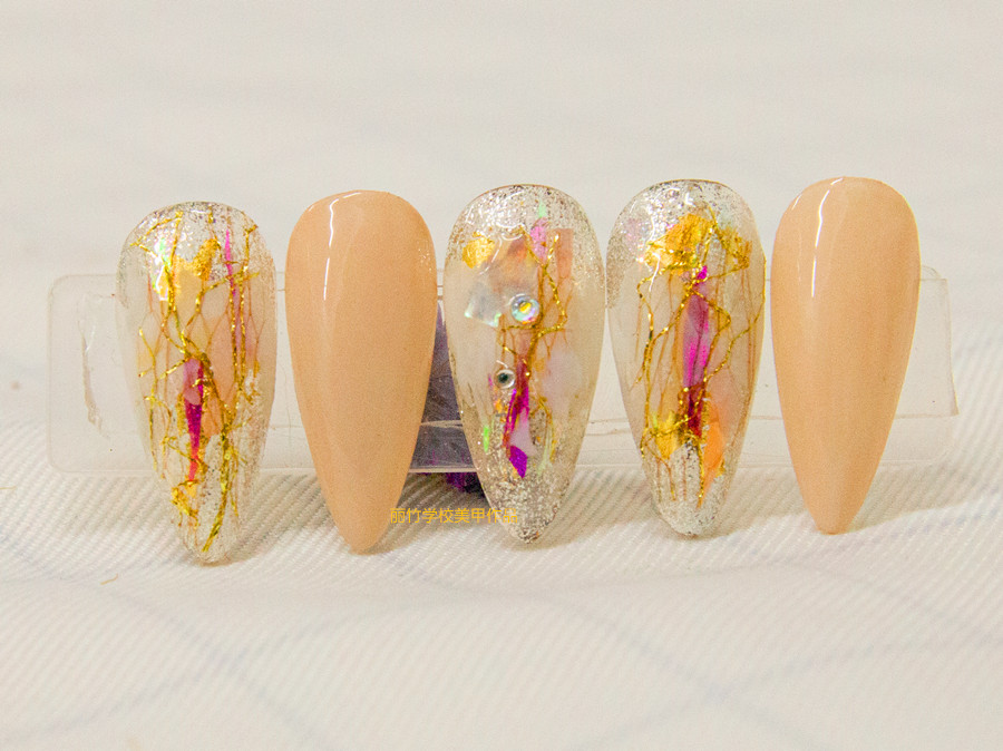 南寧培訓(xùn)美甲師,麗竹美甲培訓(xùn)班作品---鉑金膠美甲