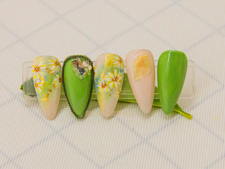 南寧美甲進修,麗竹美甲培訓(xùn)班作品---彩繪小雛菊美甲
