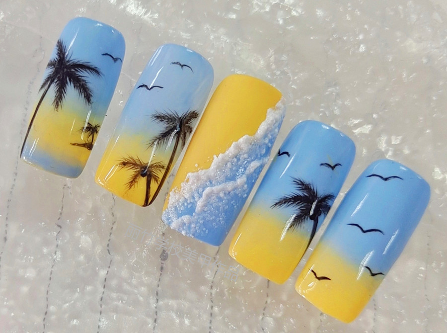 麗竹美甲培訓(xùn)學(xué)員作品:夏日海灘美甲(一)