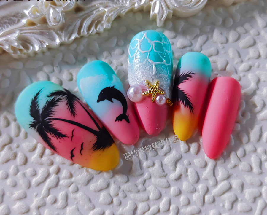 廣西美甲、零基礎(chǔ)美甲培訓(xùn):陽光,沙灘,海豚,椰樹,海鷗,海星……這妥妥的夏日標(biāo)配,你豈能錯過?現(xiàn)在去不了海邊的你,有沒有想過把這些海的元素繪制成一副讓人看一眼就心情大好的美甲款式呢?不如先來看看廣西美甲進(jìn)修班同學(xué)們繪制的夏日海灘美甲作品吧!