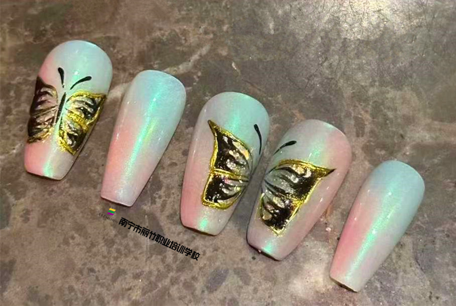 南寧美甲造型培訓(xùn)---手繪立體蝴蝶美甲