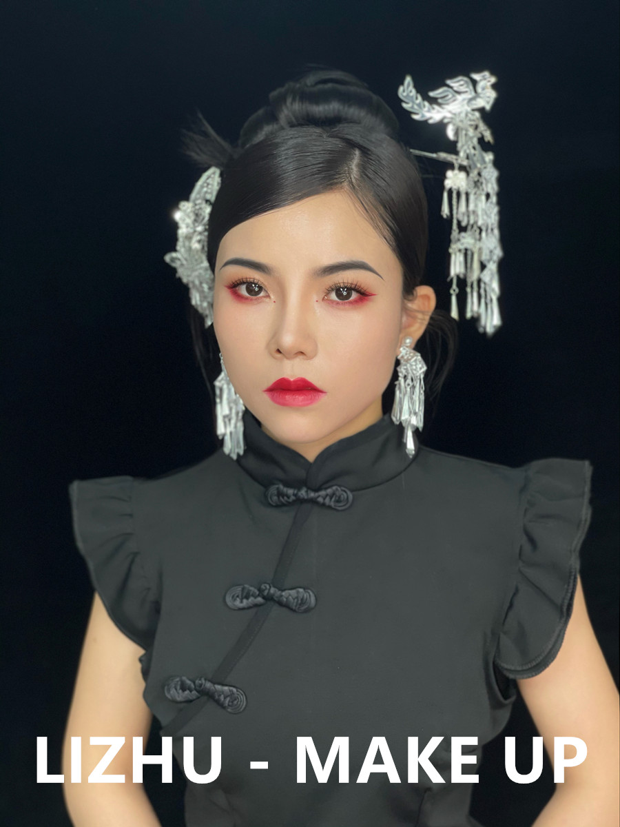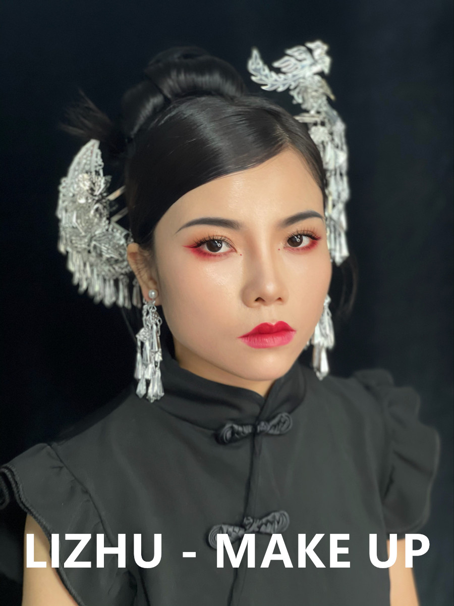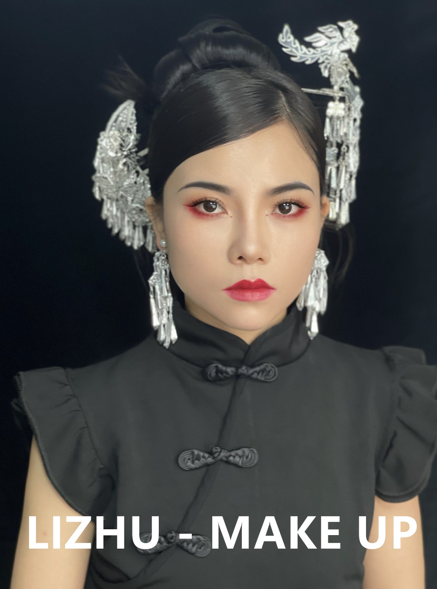 南寧化妝彩妝造型培訓、南寧學新娘寫真作品:國風造型:少數(shù)風情的銀質(zhì)珠釵發(fā)飾,俏皮簡約的高聳盤發(fā)造型,玫紅眼影與唇妝的風情演繹,搭配改良版中式黑色旗袍,好一個優(yōu)雅韻味的國風造型。無論你是想為自己學化妝,還是想以此謀生,都歡迎先通過下面的方式關注南寧美妝學校-南寧化妝師培訓班獲取到校參觀,試聽的名額,滿意之后在報名!