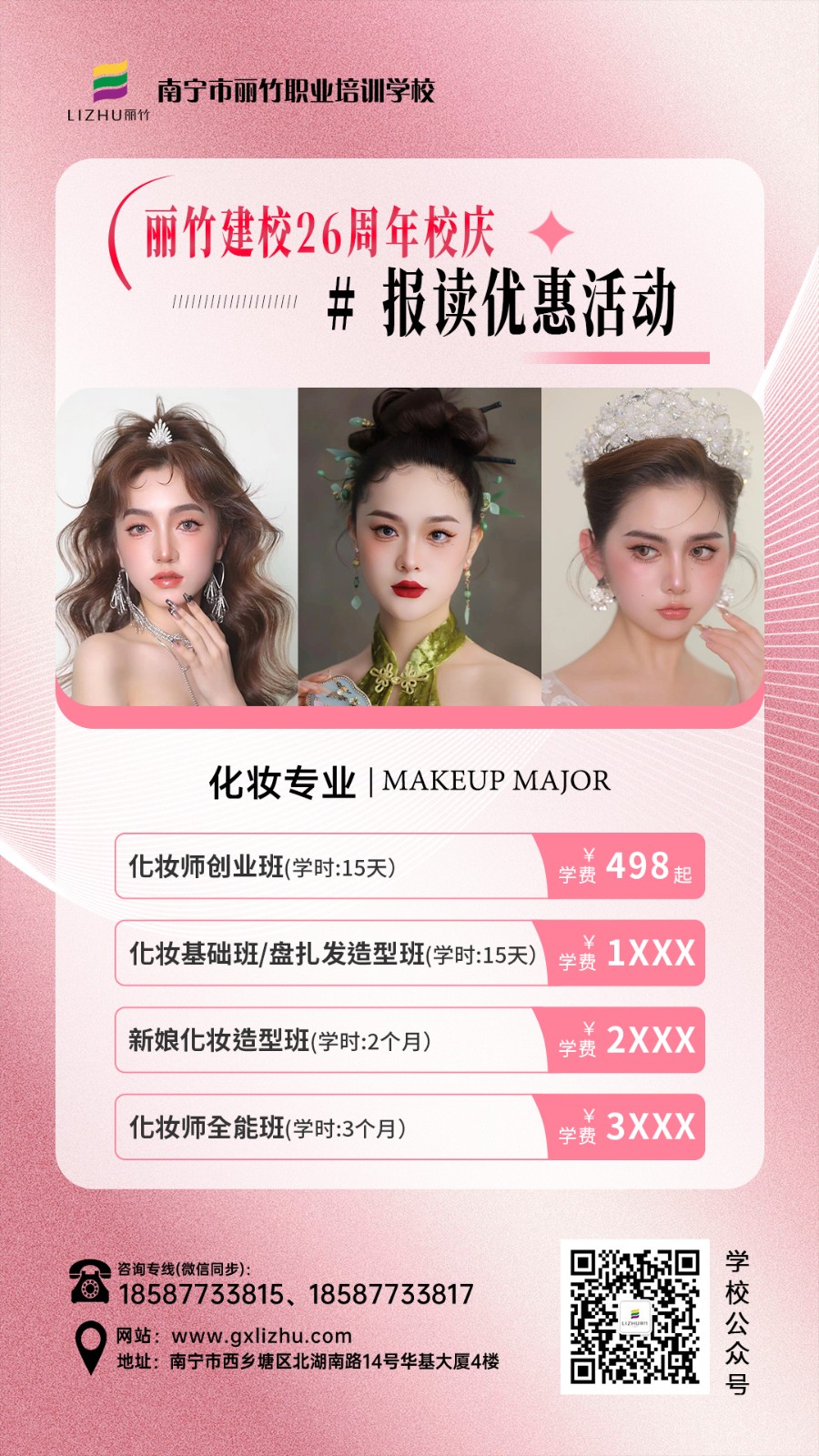所以,無論你是想為自己學化妝,還是想以此謀生,都歡迎先通過下面的方式關注南寧化妝師培訓班獲取到校參觀,試聽的名額,滿意之后在報名!