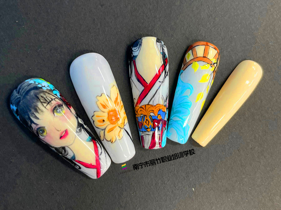 廣西美甲造型學校作品---古風人物彩繪美甲(一)