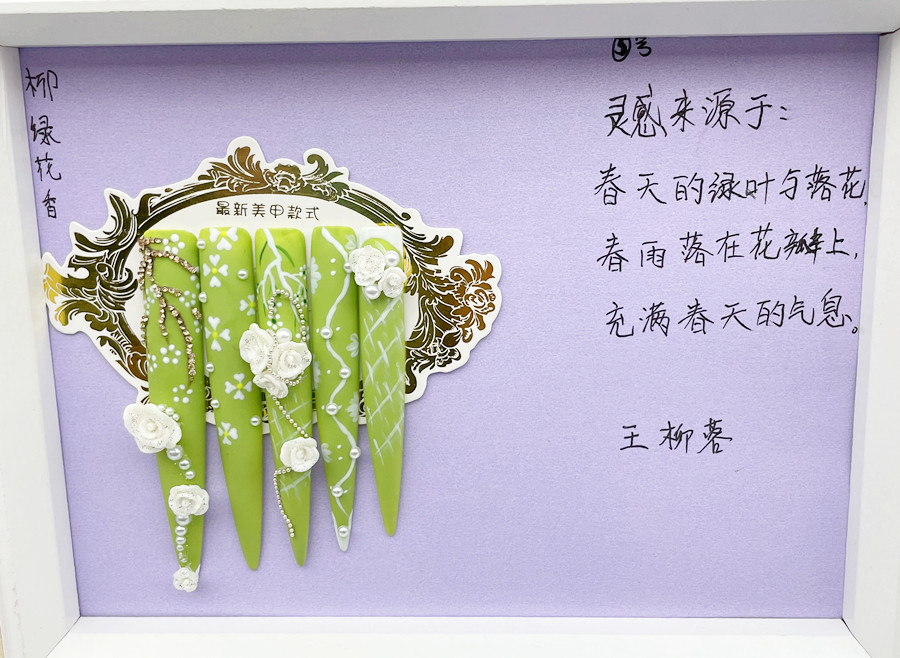 南寧美甲培訓(xùn)機(jī)構(gòu)學(xué)員作品---柳綠花香(雕花美甲)