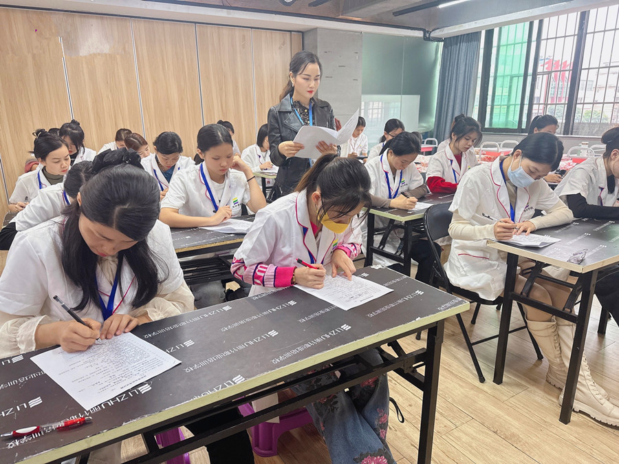 廣西美容師課堂、廣西美容理論:為了檢測(cè)同學(xué)們的學(xué)習(xí)成果,廣西美容師專業(yè)學(xué)校-麗竹美容培訓(xùn)于近日舉行了階段性的面部護(hù)理考核(理論+實(shí)操)。希望廣西美容面部護(hù)理培訓(xùn)的同學(xué)們可以在考核中歷練,在歷練中突破。如果你想在廣西學(xué)美容職業(yè),那請(qǐng)相自己的實(shí)力。