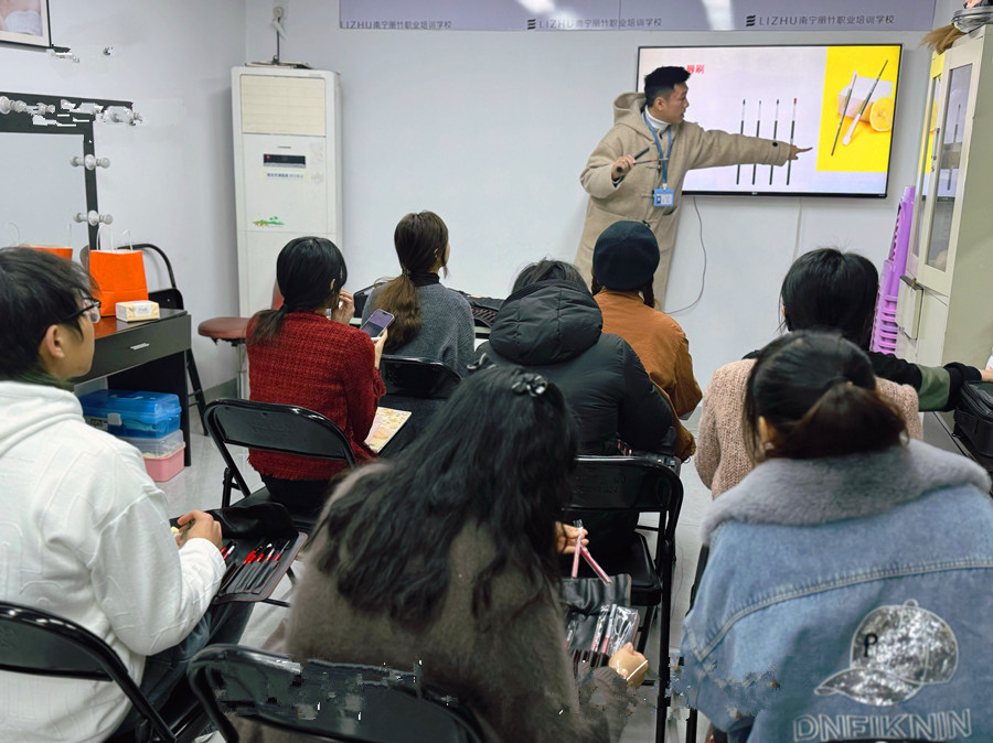 南寧化妝初學、南寧化妝學校十大排行榜:如果你學化妝從零開始,那你上的第 一 節(jié)就必須先從認識化妝工具極其用法開始。在南寧化妝基礎培訓班的教室里,玉老師正在給剛剛入學的同學講解相關知識,感興趣的小伙伴一起和我們?nèi)タ纯窗桑?/span>