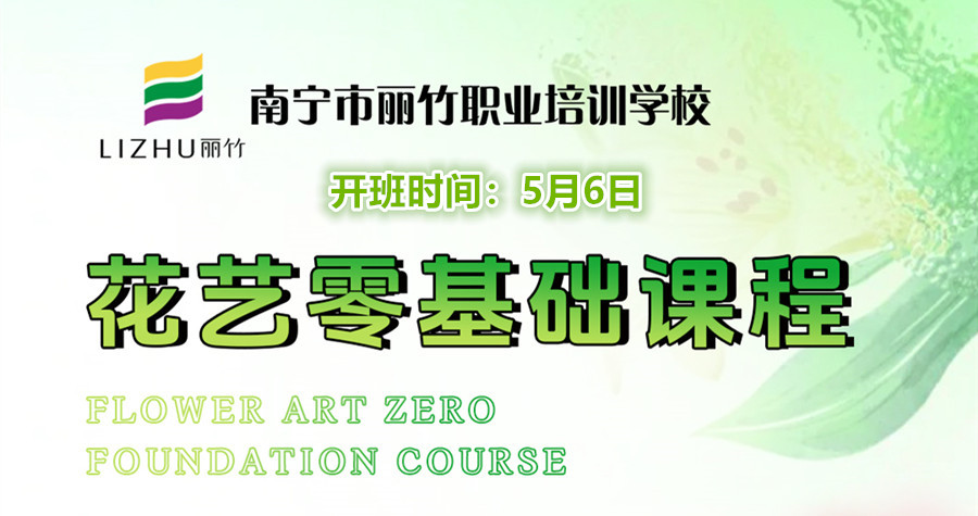 除了綠植的相關(guān)知識外,如果你還想在廣西學(xué)花藝,但是不知道廣西花藝學(xué)校有哪些?麗竹學(xué)?!痘ㄋ嚵慊A(chǔ)課程》新一期課程將在5月6日開班,教學(xué)內(nèi)容傳統(tǒng)技術(shù)與流行技巧相結(jié)合,帶你暢游浪漫花海。