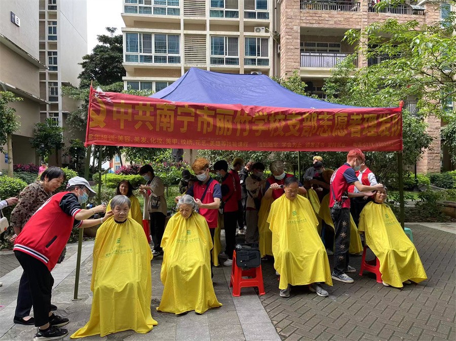 廣西美發(fā)公益-2023年5月9日-麗竹美發(fā)學(xué)校志愿者到普羅旺斯小區(qū)進(jìn)行義剪活動(dòng)