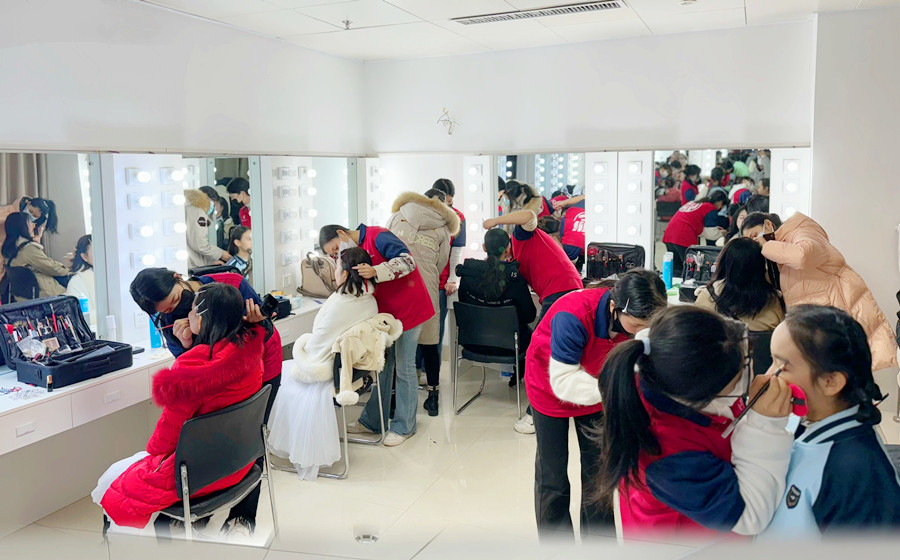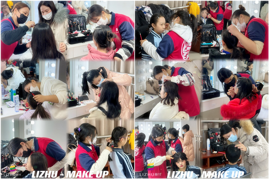 廣西化妝學(xué)校外出、廣西公益化妝活動(dòng):12月23日,廣西彩妝造型專(zhuān)業(yè)學(xué)校(麗竹彩妝培訓(xùn))受邀到南寧群眾藝術(shù)館,為在這里舉辦的“ 民盟南寧市委2024迎新文藝演出”的演藝人員們提供化妝服務(wù)。