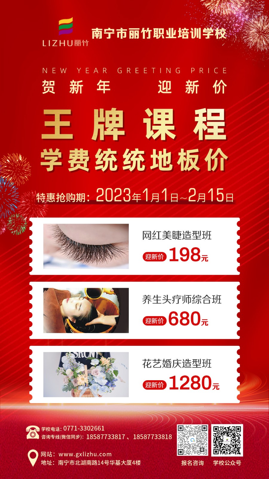 以上就是南寧紋繡課堂筆記關(guān)于零基礎(chǔ)學(xué)紋繡答疑解惑(上)部分的內(nèi)容啦!每個人迎新的方式都不一樣,如果你除了對紋繡感興趣。還對美業(yè)其他課程項(xiàng)目感興趣,那么現(xiàn)在就可以趁著麗竹學(xué)校正在進(jìn)行學(xué)費(fèi)特惠活動期間,關(guān)注我們了解下各大時(shí)尚專業(yè)的學(xué)費(fèi)活動詳情了!