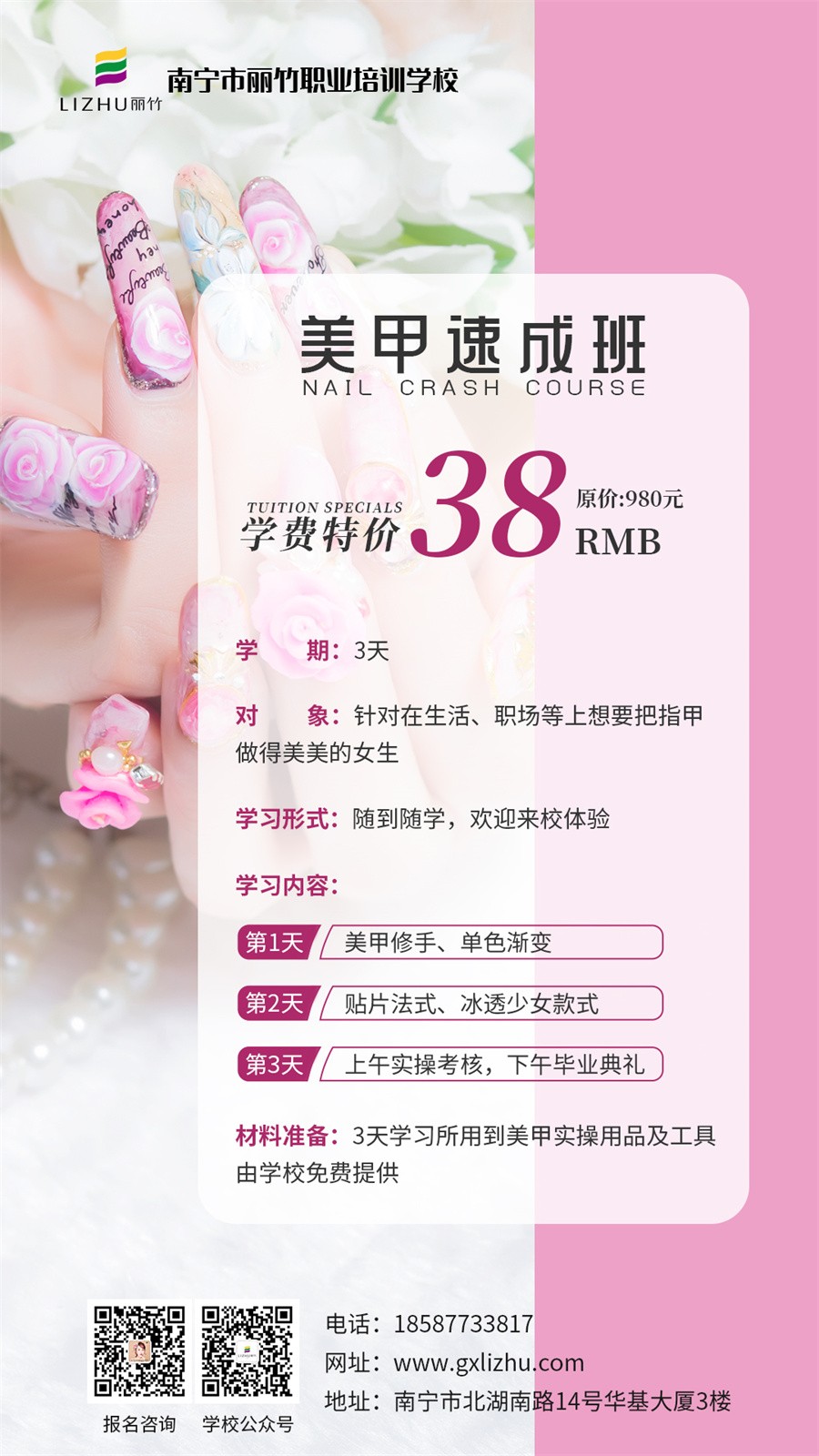 麗竹學校美甲專業(yè)報名特惠一 :美甲速成班