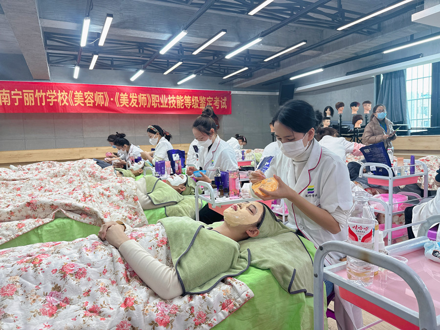麗竹學(xué)校進行廣西美容師考證鑒定考核