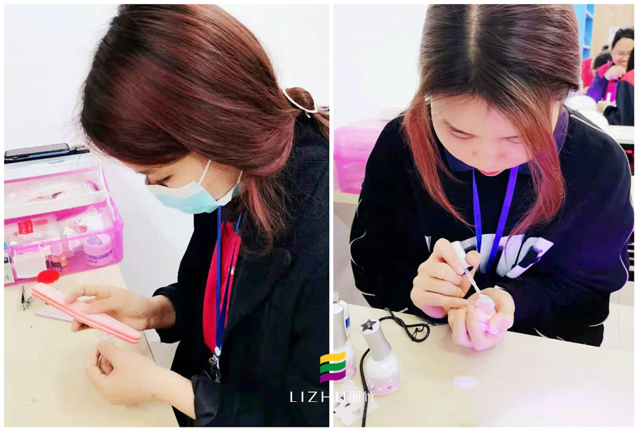 麗竹學(xué)校美甲專業(yè)-學(xué)員陸慧玲練習(xí)打磨甲片和繪制甲片圖案